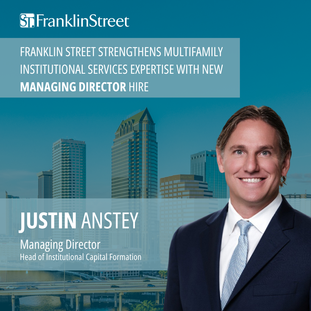 TAMPA, Florida — Franklin Street announced it has hired Justin Anstey, a 20-year veteran of the commercial real estate industry, as a managing director, head